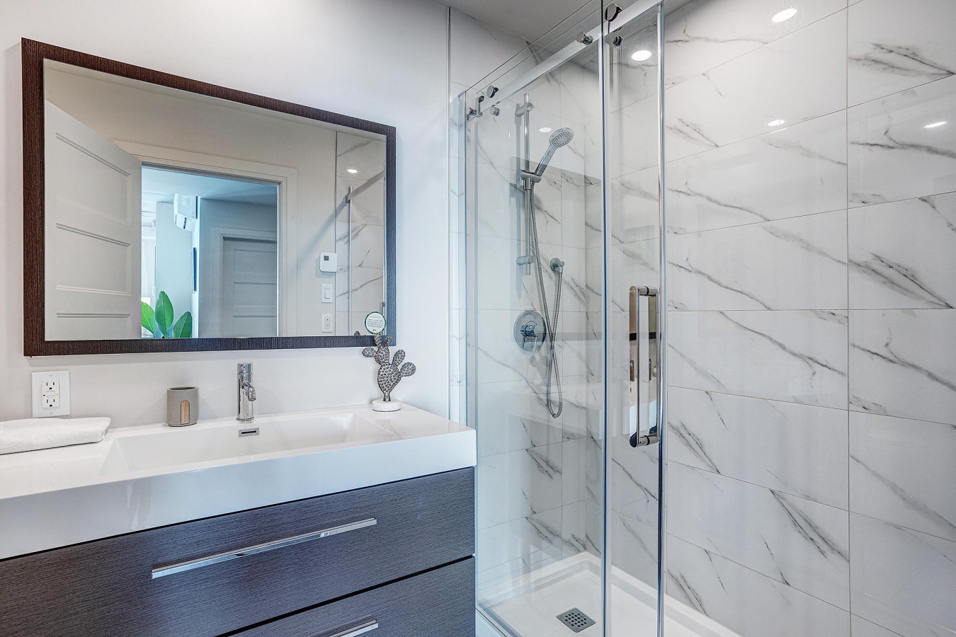 – Bathrooms: modern full bathrooms with a shower